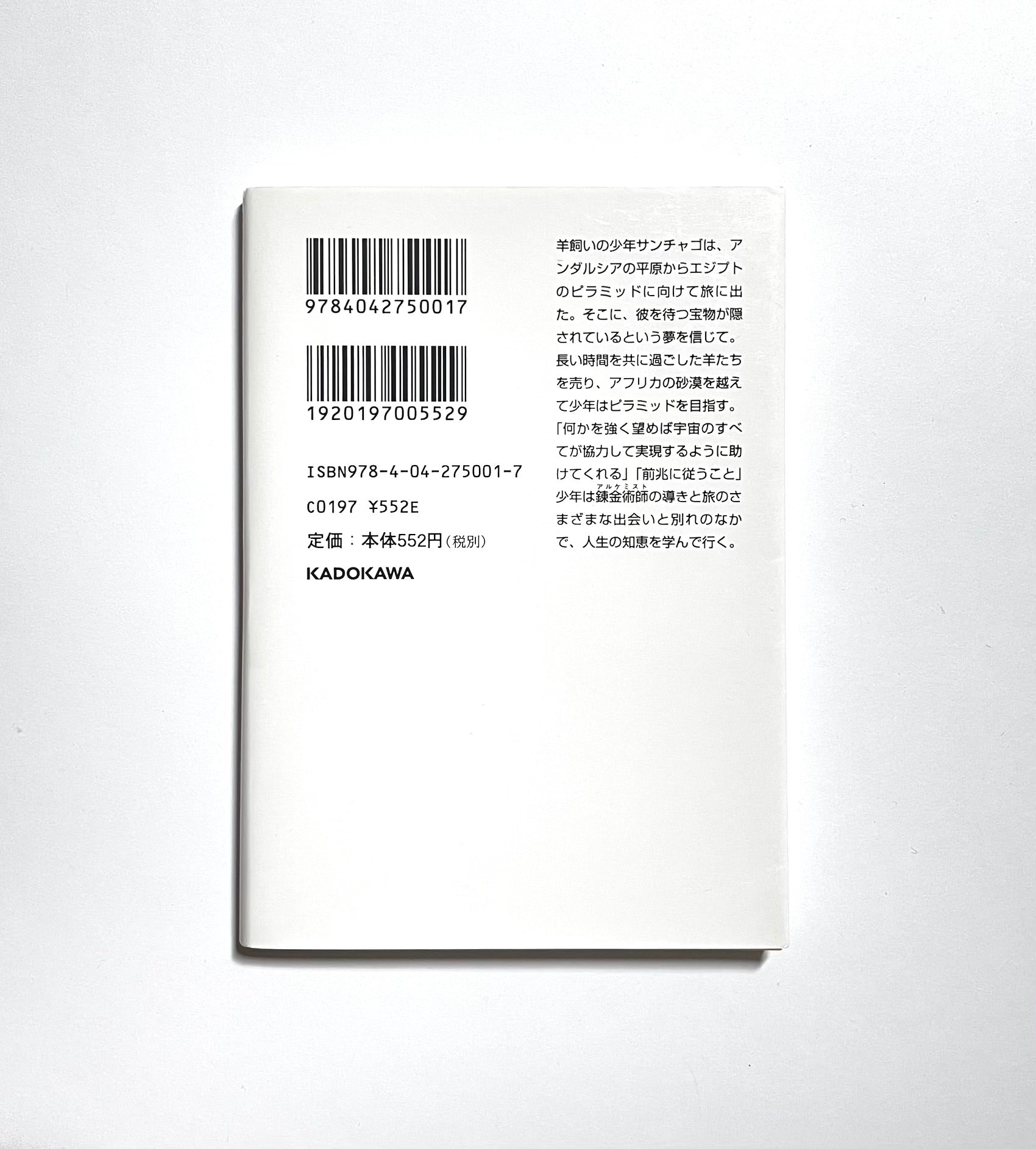 半飼いの少年サンチャゴは、その夜もまた同じ夢を見た。一週間前にも見た、ピラミッドに宝物が隠されているという夢――。少年は夢を信じ、飼っていた羊たちを売り、ひとりエジプトに向かって旅にでる。