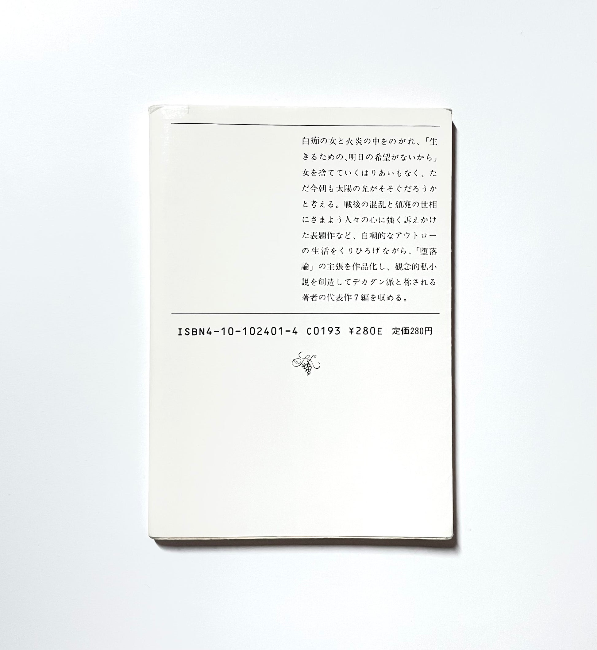白痴の女と火炎の中をのがれ、「生きるための、明日の希望がないから」女を捨てていくはりあいもなく、ただ今朝も太陽の光がそそぐだろうかと考える。戦後の混乱と頽廃の世相にさまよう人々の心に強く訴えかけた表題作など、自嘲的なアウトローの生活をくりひろげながら、「堕落論」の主張を作品化し、観念的私小説を創造してデカダン派と称される著者の代表作7編を収める。