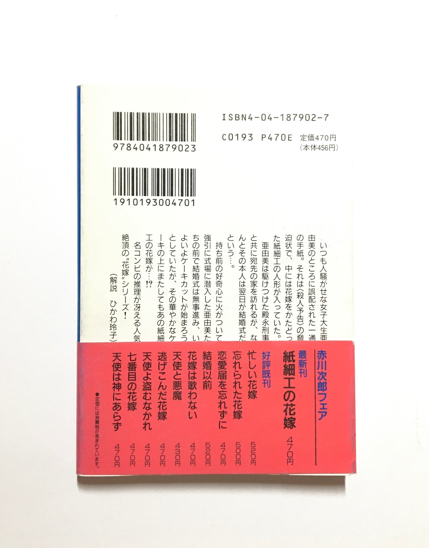 いつも人騒がせな女子大生亜由美のところに誤配された1通の手紙。それは〈殺人予告〉の脅迫状で、中には花嫁をかたどった紙細工の人形が入っていた。亜由美は駆けつけた殿永刑事と共に宛先の家を訪れるが、なんとその本人は翌日が結婚式だという…。持ち前の好奇心に火がついて強引に式場に潜入した亜由美たちの前で結婚式は無事進み、いよいよケーキカットが始まろうとしていたが、その華やかなケーキの上にまたしてもあの紙細工の花嫁が…。名コンビの推理が冴える人気絶頂の“花嫁”シリーズ。