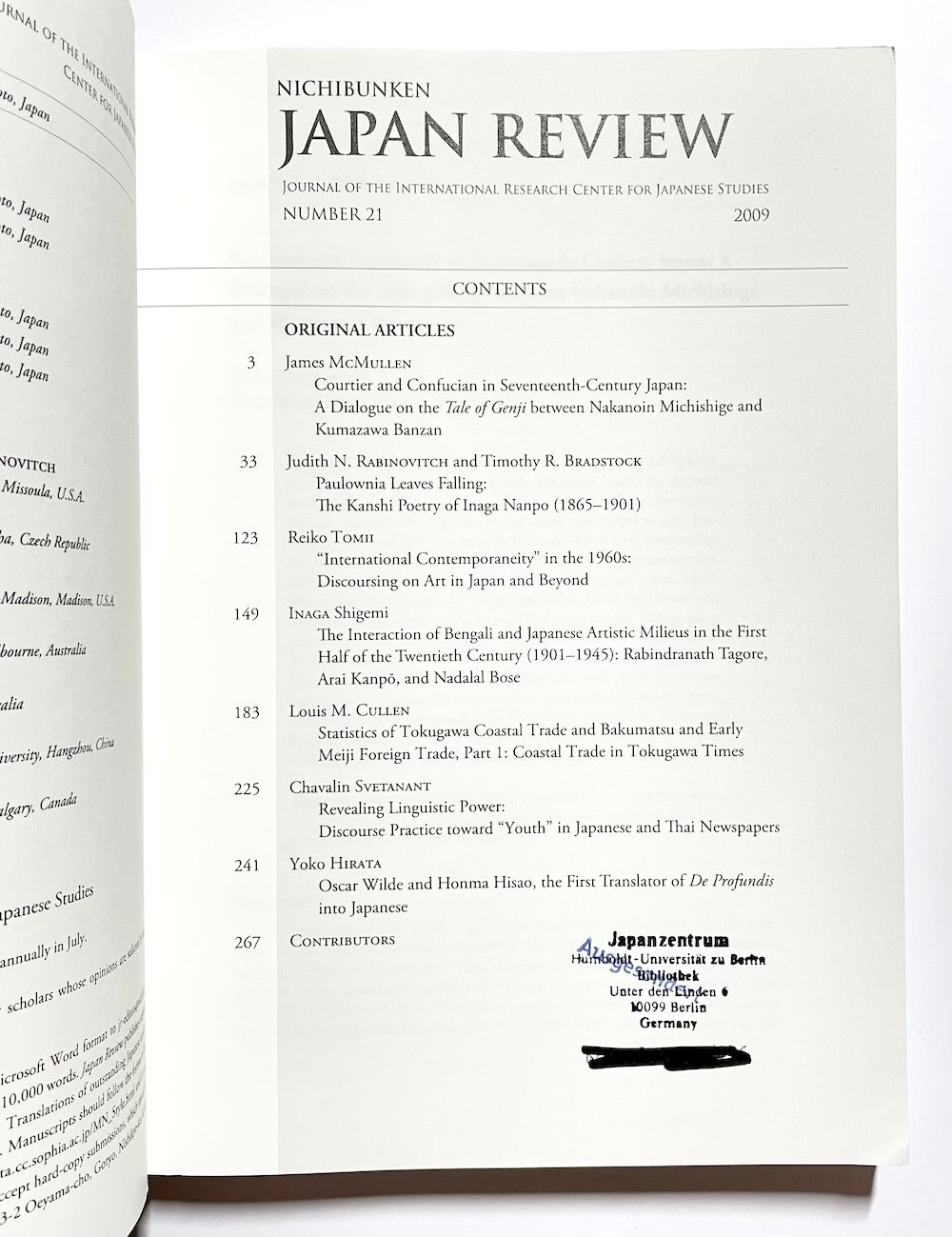 Japan Review is the refereed journal published by the International Research Center for Japanese Studies.