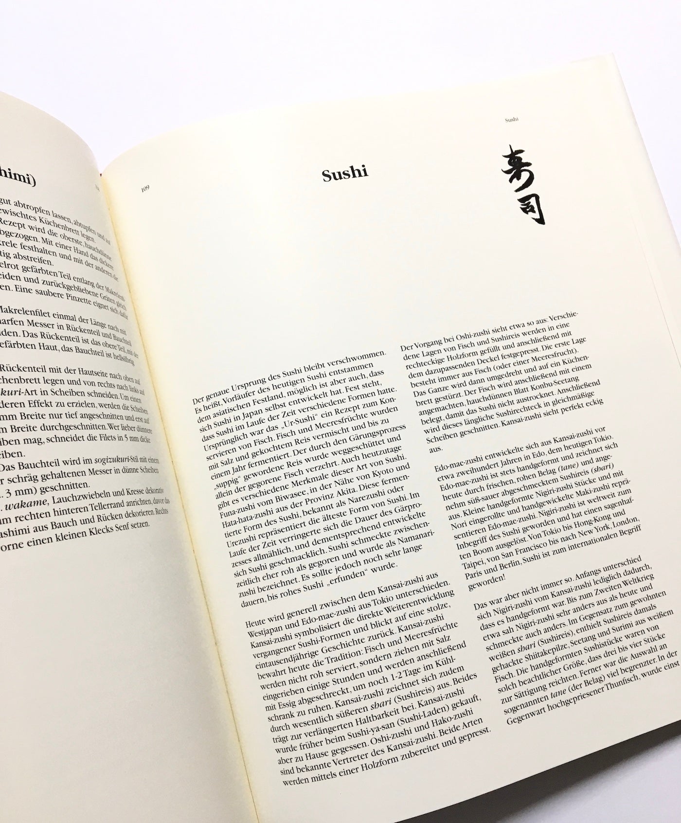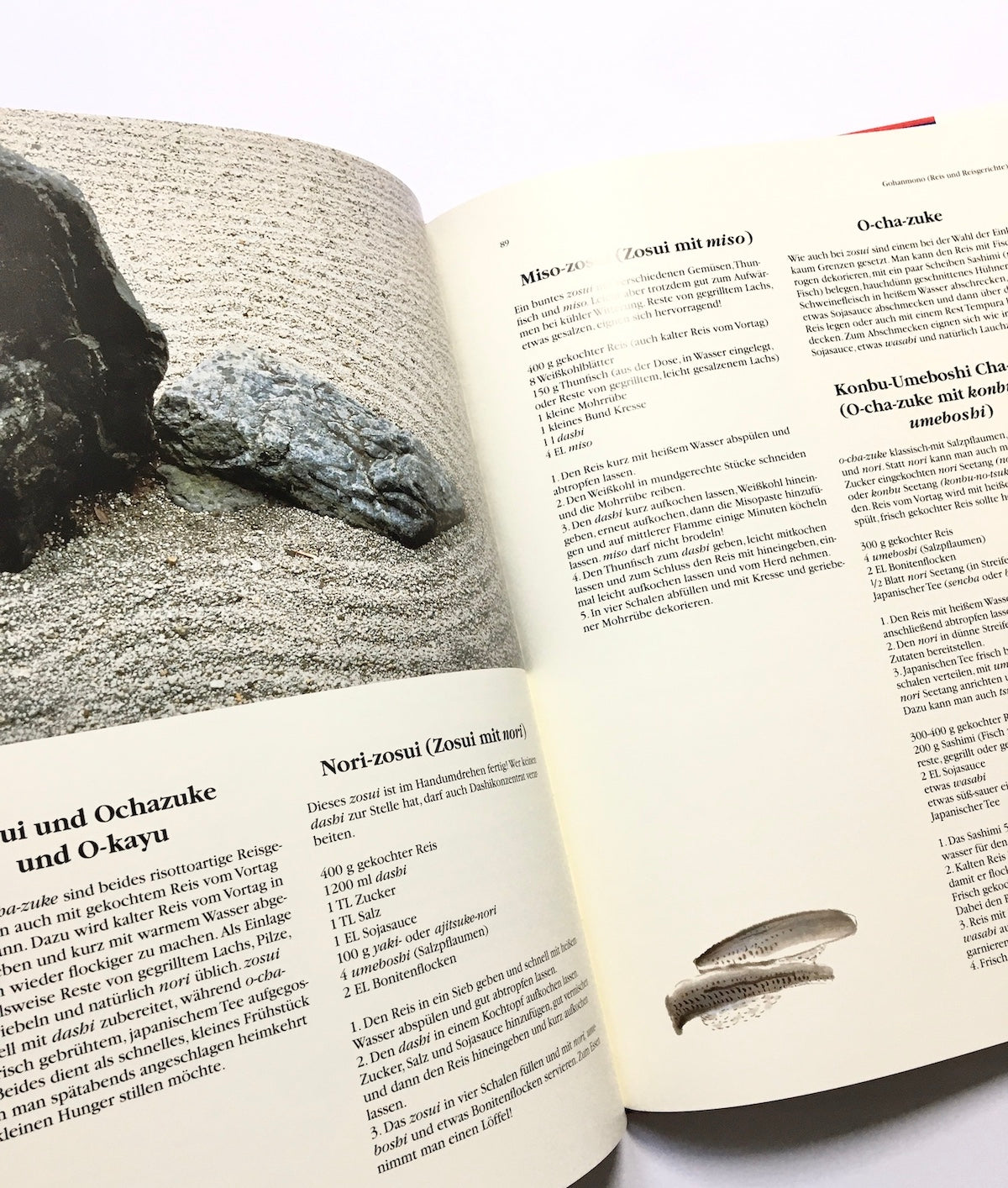 Im sehr umfangreichen Rezeptteil wird die Vielfalt und Phantasie der japanischen Küche eingefangen. Deutlich wird hier die Unterscheidung zwischen der normalen japanischen Hausmannskost und der aufwendigen Restaurantküche. Neben den verschiedenartigen Sashimi- und Sushi-Spezialitäten werden auch einfache Eintöpfe, Reis- und Nudelgerichte beschrieben. Eine Erläuterung der Aussprache und ein Japanisch-Deutsches Sprachregister runden die vielfältigen Informationen ab.
